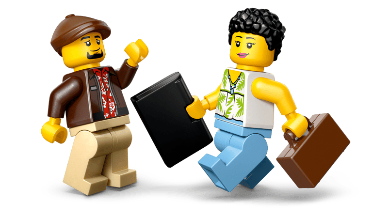 - Naklejki i akcesoria dla minifigurek — w zestawie znajduje się ekran GPS, logo taksówki, naklejki reklamowe i naklejki z akumulatorem do zabawkowego pojazdu, a także bagaże dla minifigurki turysty