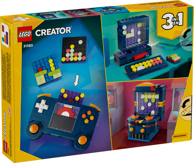 - Ozdoba do pokoju gracza 3 w 1 — zestaw konstrukcyjny LEGO® Creator 3 w 1 Konsola do gry retro (31380) pozwala chłopcom, dziewczynkom i graczom w wieku od ośmiu lat zbudować i przebudowywać trzy różne akcesoria do grania z tych samych klocków