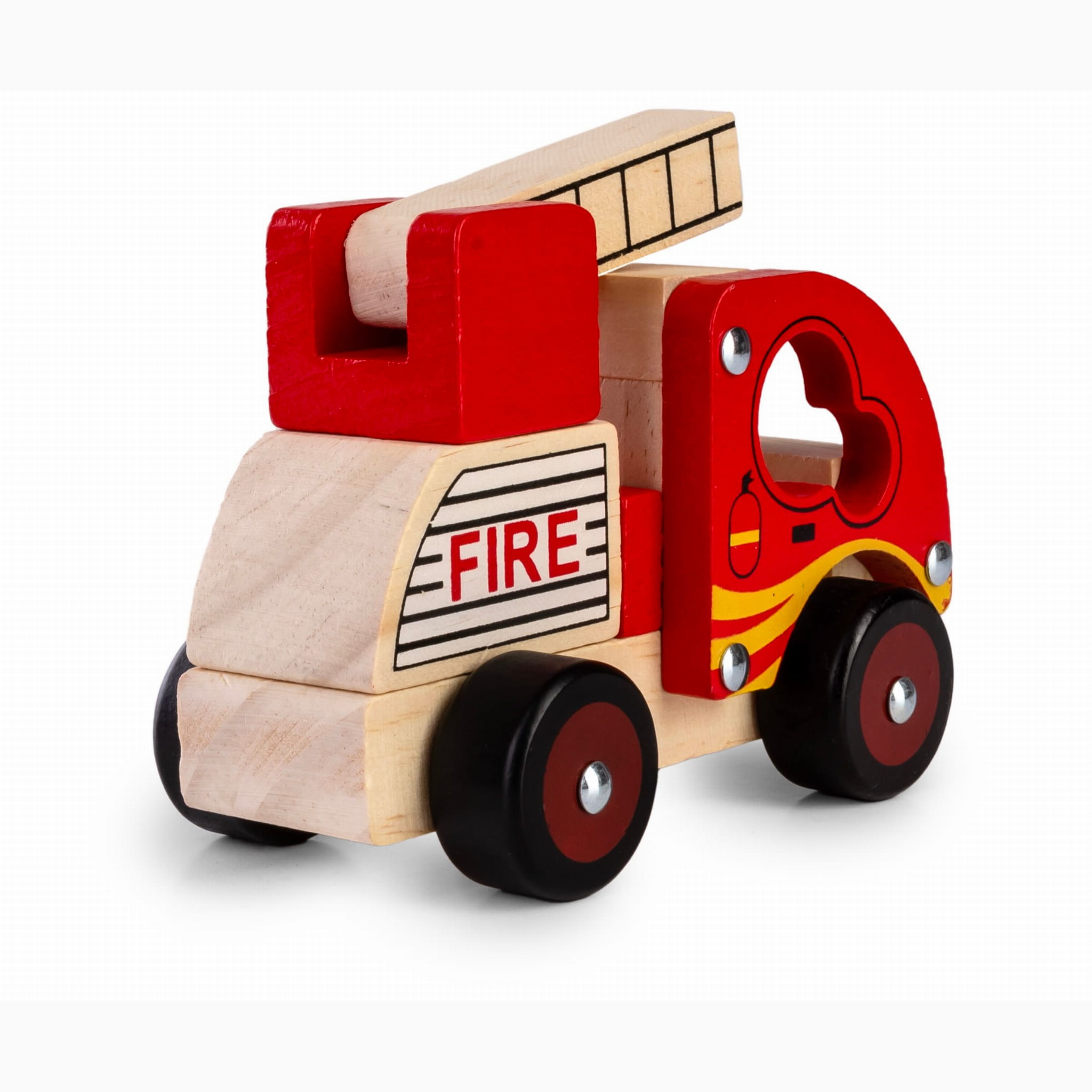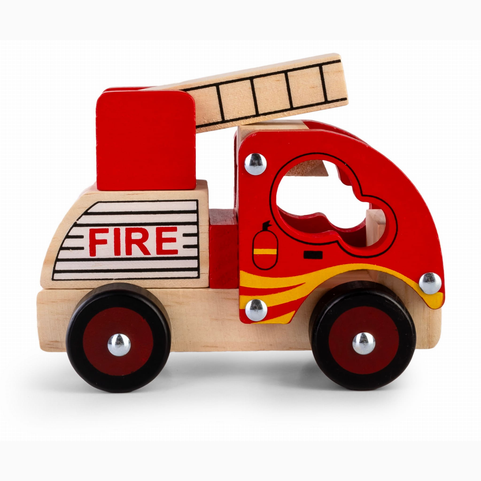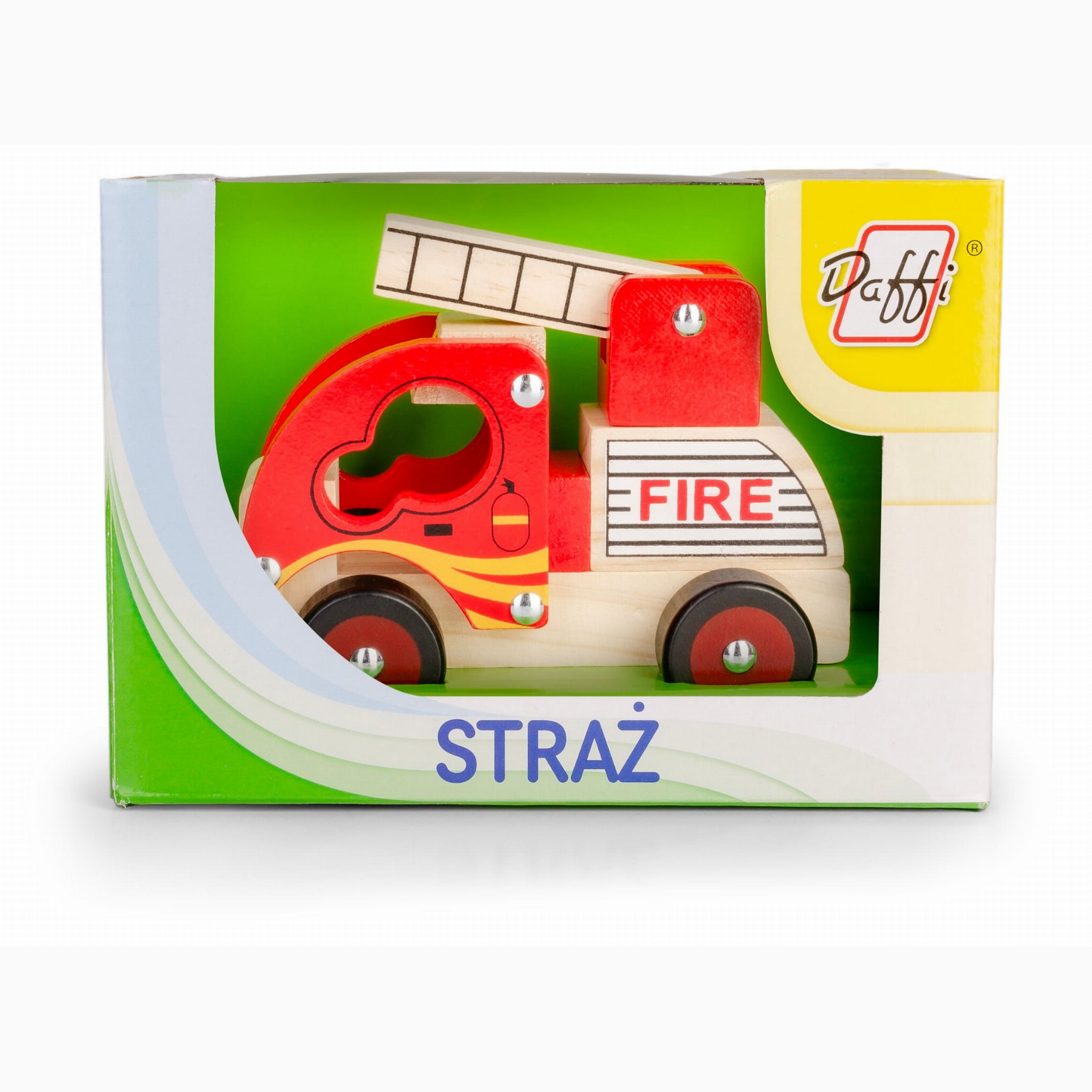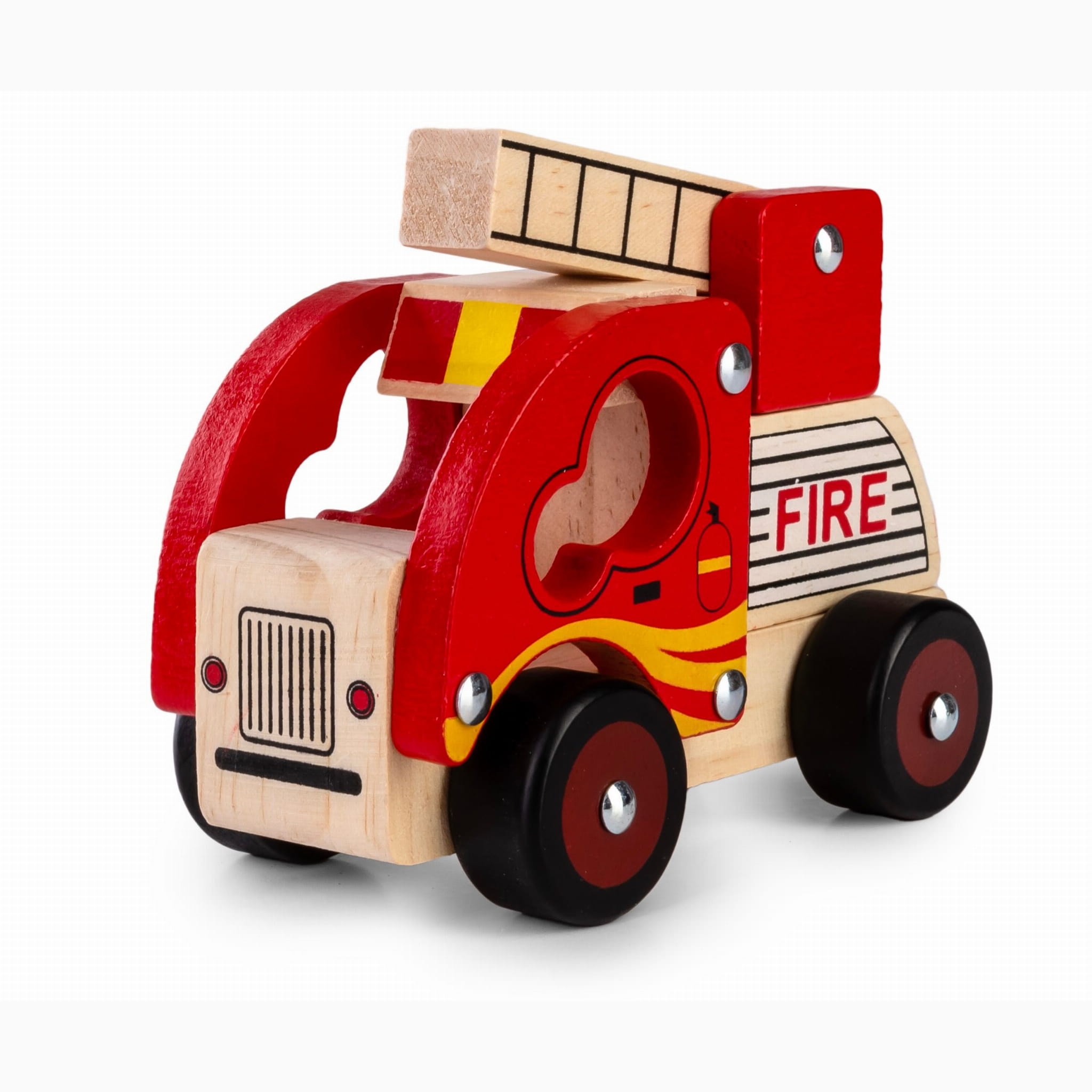 Seria pojazdów ratunkowych wykonanych z drewna. Ręcznie malowany wóz strażacki rozbudzi w dziecku ciekawość i kreatywność, dając początek świetnej zabawie.