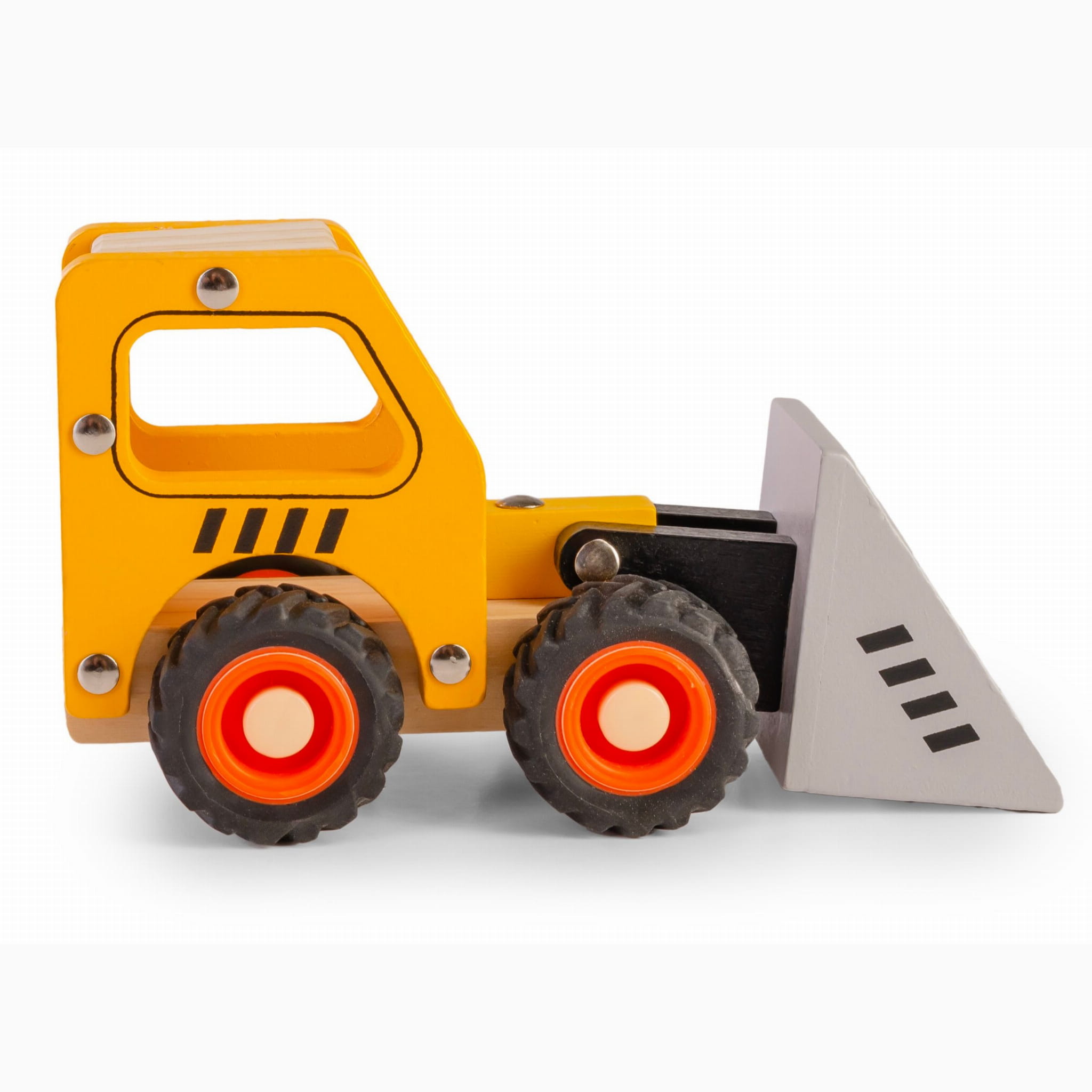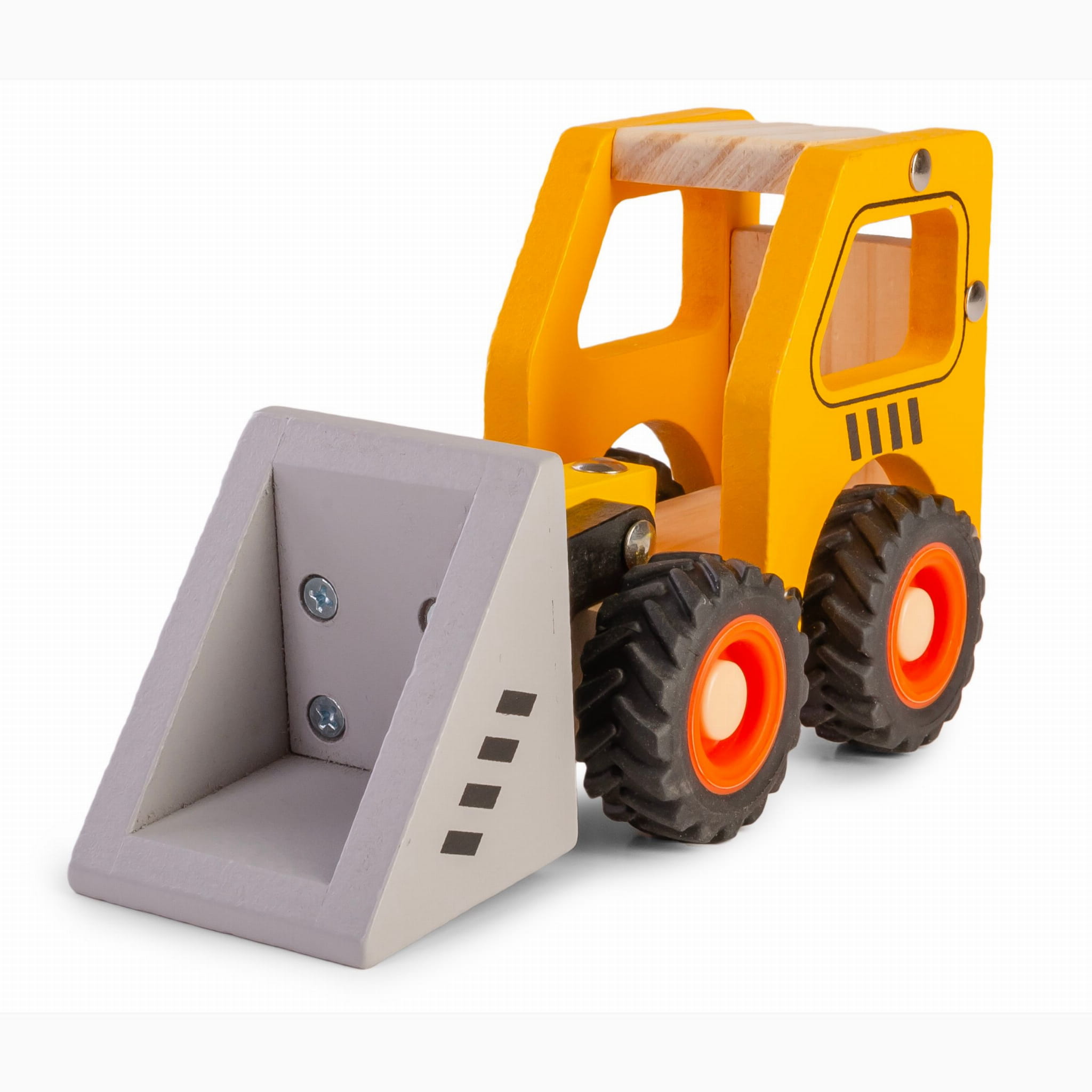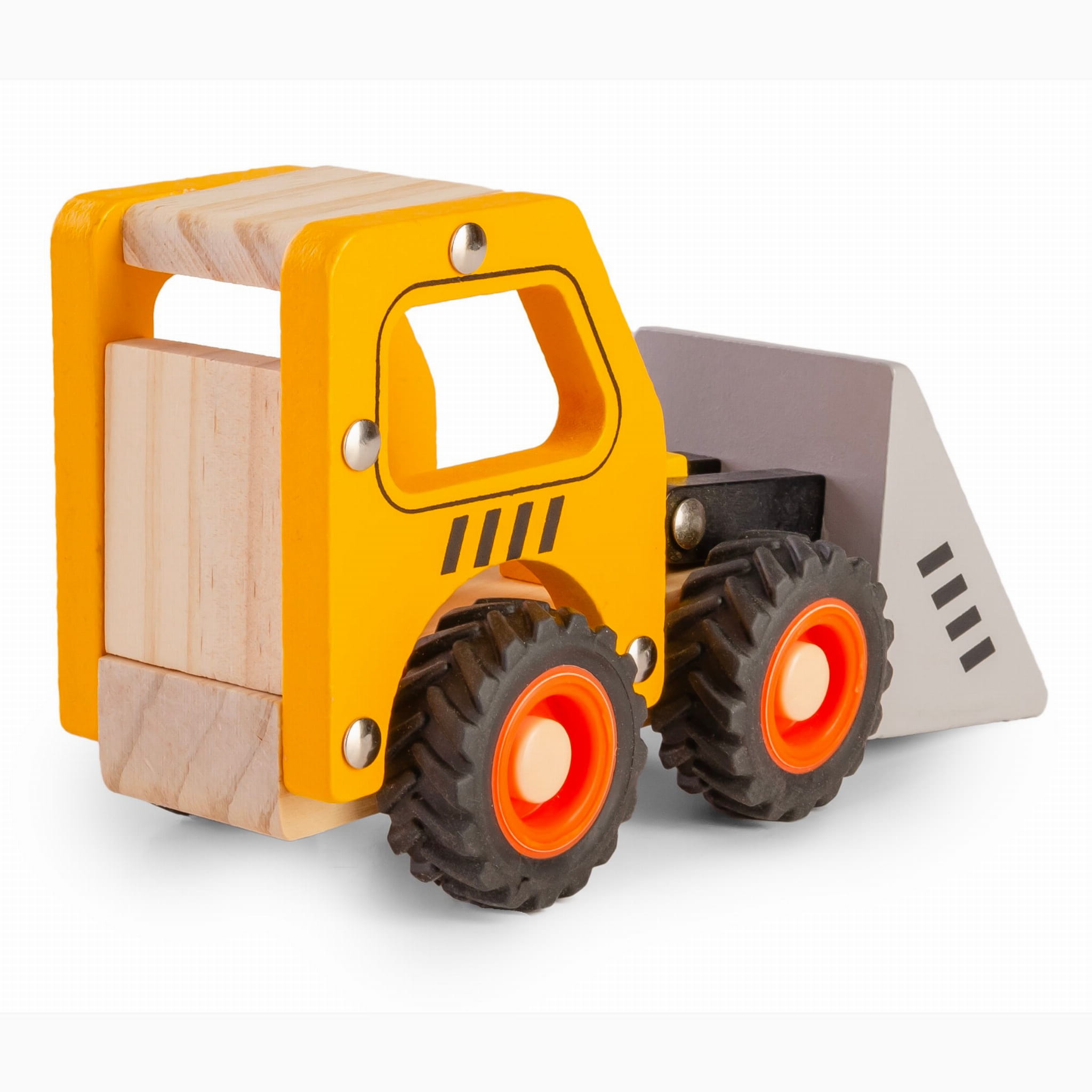 Drewniany pojazd budowlany rozbudzi ciekawość i chęć zabawy każdego dziecka. Koparka malowana bezpieczną na dzieci farbą, opony wykonane są z miękkiej gumy.