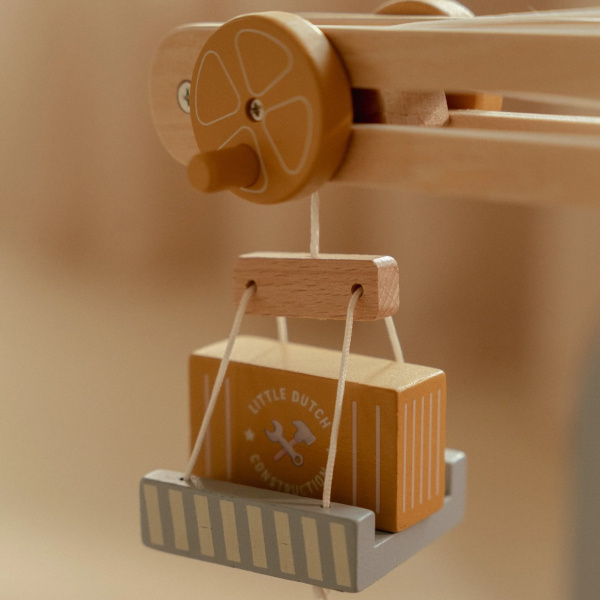 Dźwig budowlany + AKCESORIA - pojazdy budowlane - budowa - drewniany dźwig FSC Little Dutch