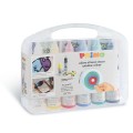 Walizka uniwersalna zawiera 6 kolorów farb 75 ml, 1 matę plastikową A3 42x29,7 cm oraz instrukcję.