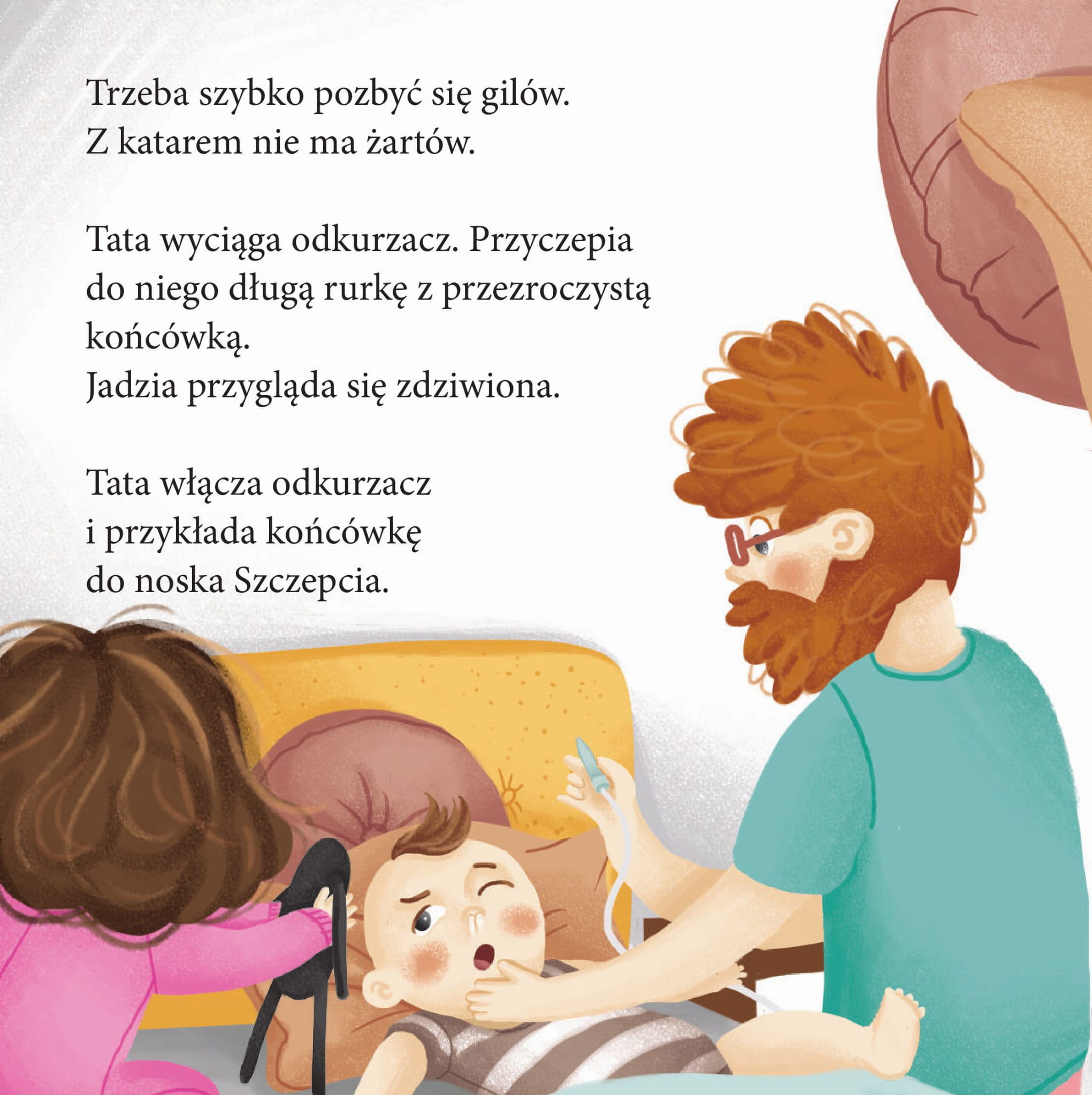 Jadzia się przeziębiła. Ma temperaturę i zatkany nos. Musi leżeć w łóżku, aż wyzdrowieje. Trzeba szybko pozbyć się gilów, bo chorowanie jest strasznie nudne. Tylko jak to zrobić?