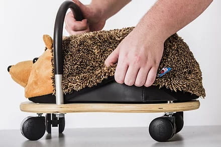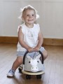 Solidnie zaprojektowane i wykonane. Jeździki zbudowane są na mocnej, drewnianej podstawie o bezpiecznych zaokrąglonych kształtach. Wyposażone w 4 plastikowe kółka obrotowe o łacznej wytrzymałości do 25kg. Siedzisko wykonane z poliuretanowej ekoskóry, dzięki czemu są miłe i miękkie w dotyku oraz łatwe w czyszczeniu i pielęgnacji. Jeździk posiada aluminiowy uchwyt pokryty miękką gumą.
