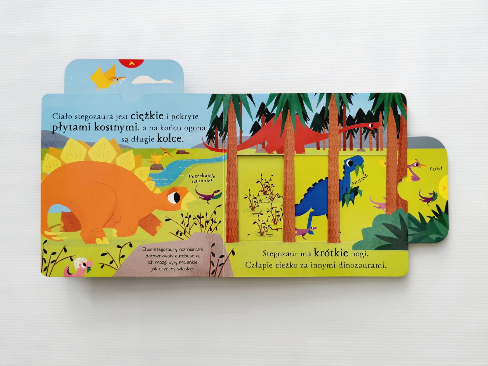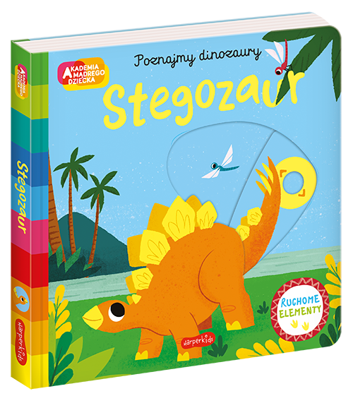 Kartonowa książeczka pod tytułem Stegozaur. Poznajemy dinozaury. Akademia mądrego dziecka to kolejna pozycja z serii o wielkich, prehistorycznych gadach. Na każdej, kolorowej stronie mały czytelnik znajdzie interesujące fakty i ciekawostki z życia dinozaurów. Tym razem przyglądamy się wielkiemu Stegozaurowi, któremu burczy w brzuszku. Czym można go nakarmić, co w tamtych czasach jadł ten wielki gad? Przeglądając kartonowe strony dowiemy się jak ten potężny zwierz był zbudowany, jak bronił się przed innymi drapieżnikami i czy na prawda, że miał na ogonie kolce? Dodatkowo na każdej stronie mamy ruchomy element, co sprawia, że czytanie jest też świetną zabawą pozwalającą ćwiczyć paluszki maluszkom.