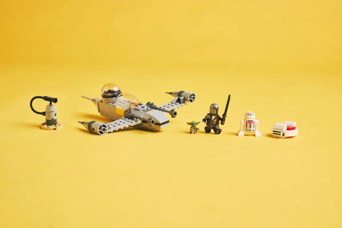 - Zestaw z myśliwcem N-1 Mando i Grogu — dzięki temu zestawowi dzieci w wieku od czterech lat uczą się budować z klocków LEGO® i wymyślać własne fantastyczne historie, wcielając się w bohaterów serialu Star Wars: The Mandalorian