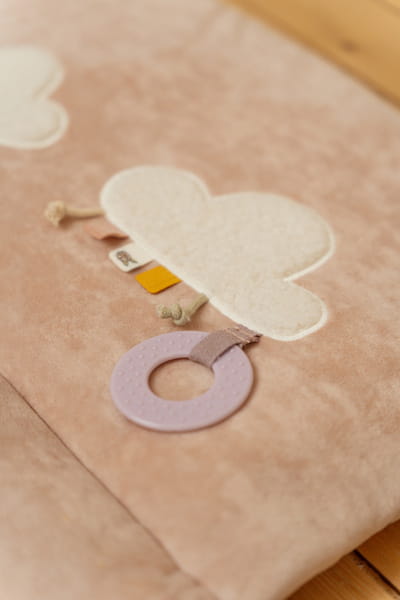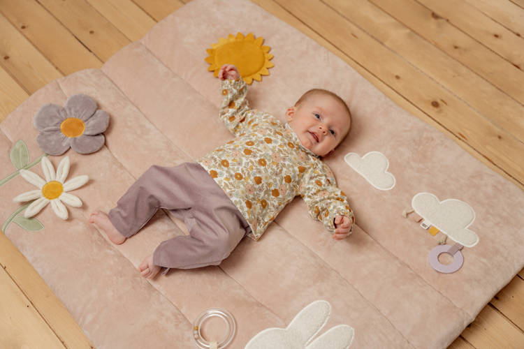 Mata edukacyjna Vintage Little Flowers od Little Dutch x Miffy. Interaktywna mata podłogowa, to mięciutki i przytulny dywanik, który zawiera zabawki interaktywne dla pobudzania ciekawości malucha. Mata jest puszysta, bardzo przyjazna dla dziecka od pierwszych dni życia. Mata rośnie wraz z dzieckiem i potrafi je zaciekawić na każdym etapie rozwoju. Posiada elementy stymulujące dotyk, słuch, posiada różne faktury. Znajdziecie tam liście kwiatów wydające szeleszczące dźwięki, małe lusterko ukryte za słońcem, miękkie, pluszowe chmury, a do odkrycia są różne, kolorowe metki, gryzak i pluszowa Miffy z grzechotką. To wszystko zachęci maluszka do ciekawej, rozwijającej zabawy. Stanowi doskonałe połączenie z pozostałymi produktami z kolekcji Vintage Little Flowers od Little Dutch x Miffy. Idealny pomysł na prezent.