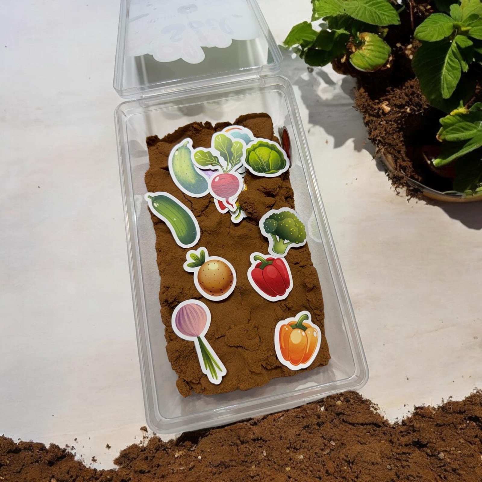 Kreatywna eksploracja – dzieci mogą układać własne historie, wykorzystywać piasek do zabawy w farmę czy sklep warzywny.