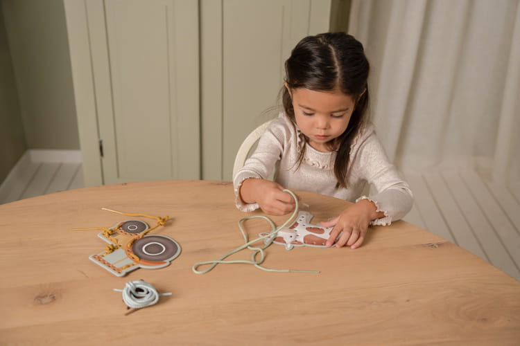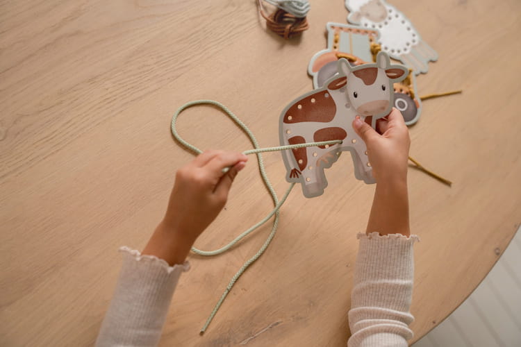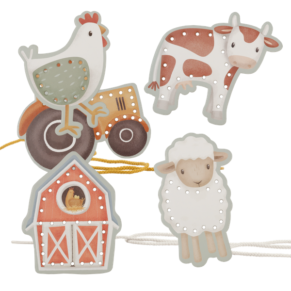 Przewlekanki Little Farm od Little Dutch. Zestaw składający się z 5 kart z motywami Little Farm i sznureczków, które dziecko może przewlekać przez obrazki. Zabawka ćwiczy motorykę małą, koordynację i cierpliwość. Świetna zabawa gwarantowana!