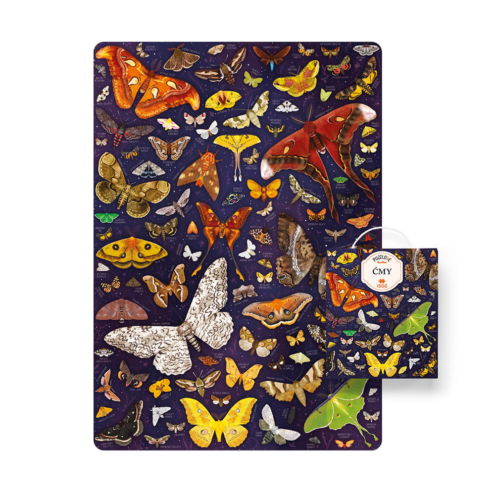 Przepiękne ćmy zleciały się, aby stworzyć wyjątkowo klimatyczną ilustrację. Przed Wami najbardziej fascynujące gatunki nocnych owadów. Czy znaliście je wszystkie? Ułóżcie duże, 1000-elementowe puzzle, aby zrelaksować się i wprowadzić w dobry i magiczny nastrój.