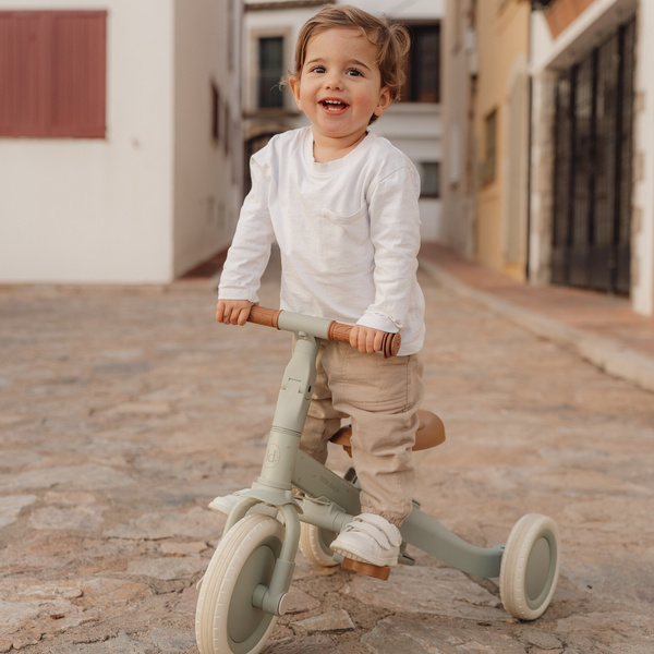 Rowerek trójkołowy 4w1 z rączką Green od Little Dutch. Czas na pierwsze rowerowe przygody. Lekki, kompaktowy i regulowany rowerek jest idealny do rozwijania umiejętności motorycznych dziecka, zapewniając jednocześnie wiele godzin zabawy. Od rowerka trójkołowego do rowerka biegowego w jednej chwili - może być wykorzystywany na 4 różne sposoby w zależności od wieku dziecka i jego umiejętności. Bezpieczeństwo to podstawa - rowerek posiada szelki i barierkę zabezpieczającą, które łatwo zdjąć, kiedy już nie będą potrzebne. Regulowaną rączką łatwo można prowadzić rower, a pedały można przechowywać pod siodełkiem. Rowerek rośnie razem z dzieckiem jednocześnie ułatwiając mu naukę jazdy na rowerze.