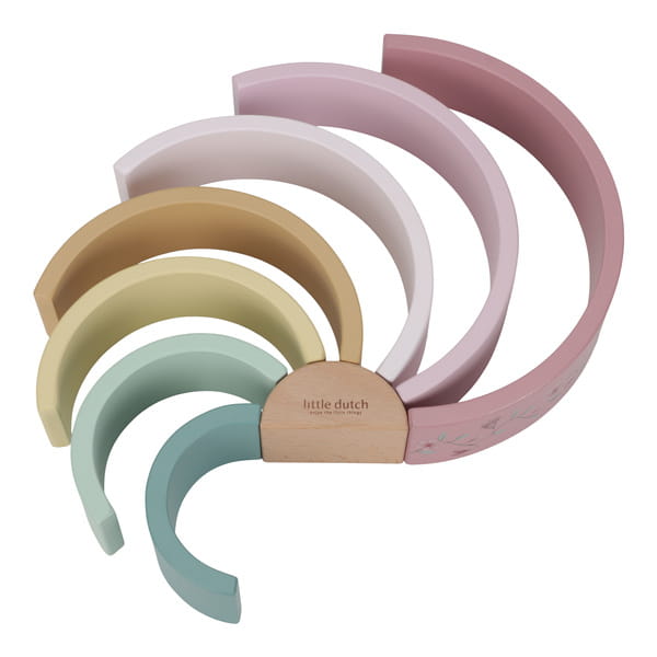 Drewniana tęcza Fairy Garden od Little Dutch. Składa się z 8 łuków w różnych rozmiarach pasujących do siebie. Ta tęczowa układanka w odcieniach różowego, żółtego i zielonego rozwija małą motorykę i wyobraźnię dzieci. Budowanie figur, tuneli kolejowych lub mostów dla małych samochodów - istnieją nieskończone możliwości kreatywne i mnóstwo niekończącej się zabawy! Tęcza będzie również uroczym elementem wystroju pokoju dziecięcego. Tęcza to świetny pomysł na prezent i doskonałe uzupełnienie dla pozostałych zabawek z kolekcji Fairy Garden od Little Dutch.