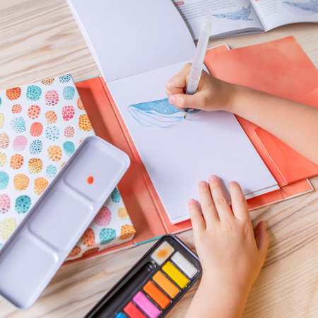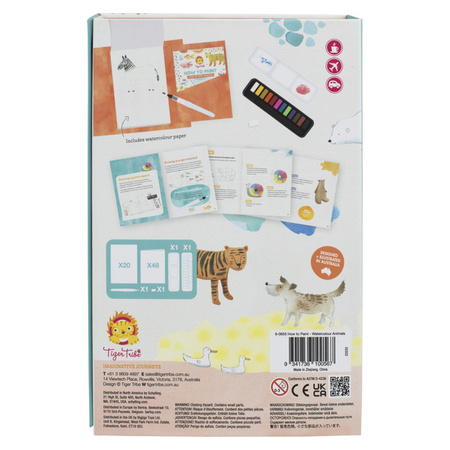 Jak Malować - Akwarelowe Zwierzęta od Tiger Tribe to piękny zestaw, który został zaprojektowany przez utalentowanego artystę malarza. Zestaw zawiera wszystko, czego potrzebujesz, w tym 12 farb akwarelowych o intensywnej pigmentacji i pędzelek wodny do malowania bez bałaganu. Szczegółowy przewodnik prowadzi młodych artystów przez 18 lekcji krok po kroku, ucząc różnych umiejętności malarskich, pozwalając malować ulubione zwierzęta - duże i małe, od kotów i psów po ślimaki i wieloryby. Na stronach bloku akwarelowego znajduje się szkic każdego zwierzęcia, dzięki czemu dzieci mogą skupić się na lekcjach malowania, w tym mieszaniu kolorów, technice mokre na mokre/mokre na suche, nakładaniu warstw, fakturach i wielu innych! Zestaw jest kompaktowy i przenośny, więc można go używać nawet do malowania „en plein air” (na zewnątrz) - jak prawdziwi impresjoniści.