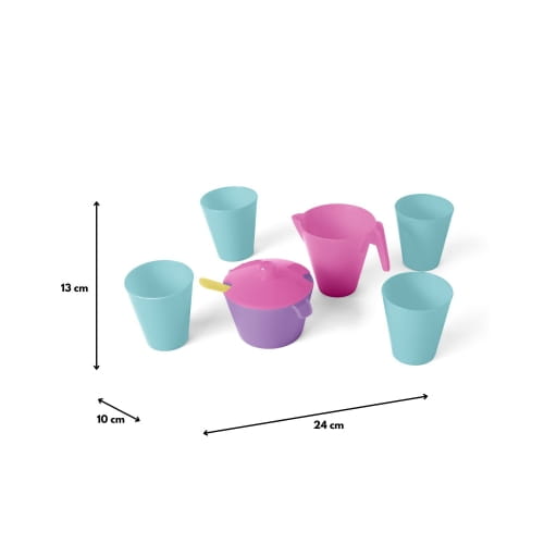 Zestaw naczyń Party Time sprawi mnóstwo radości każdemu dziecku i będzie doskonałym uzupełnieniem dziecięcej kuchni. Zestaw składa się z 8 elementów: dzbanka, cukiernicy z pokrywką i łyżeczką oraz 4 kubków. Poszczególne elementy zestawu są w kolorze różowym, fioletowym i miętowym.